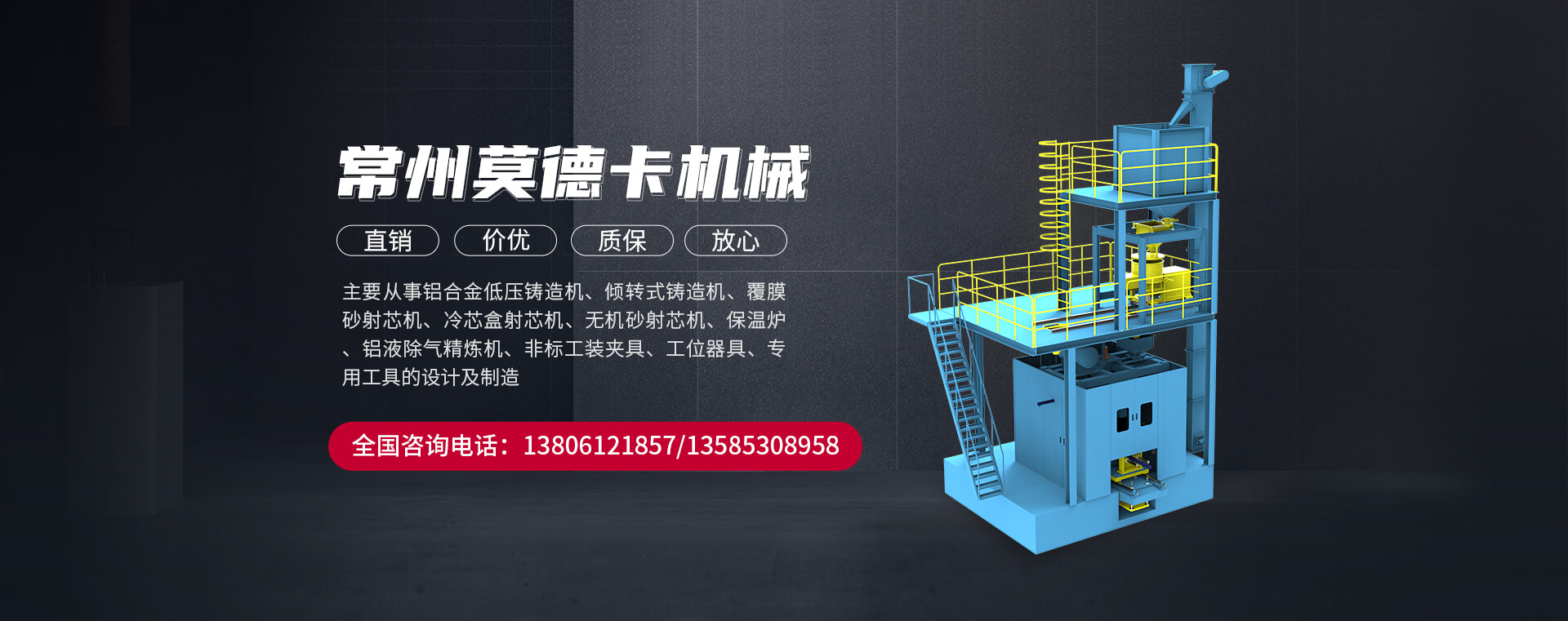 常州莫德卡機(jī)械有限公司坐落于經(jīng)濟(jì)發(fā)達(dá)的長(zhǎng)三角地區(qū)--江蘇省常州市新北區(qū)高新技術(shù)開發(fā)區(qū)。公司主要從事鋁合金低壓鑄造機(jī)、傾轉(zhuǎn)式鑄造機(jī)、覆膜砂射芯機(jī)、冷芯盒射芯機(jī)、無機(jī)砂射芯機(jī)、保溫爐、鋁液除氣精煉機(jī)、非標(biāo)工裝夾具、工位器具、專用工具的設(shè)計(jì)及制造。公司成立于2015年5月,注冊(cè)資本500萬元,員工50多人,技術(shù)人在鋁合金和黑色鑄造產(chǎn)品開發(fā)方面具有深入的理論研究和豐富的汽車零部件制造經(jīng)驗(yàn),集工廠規(guī)劃、工藝...